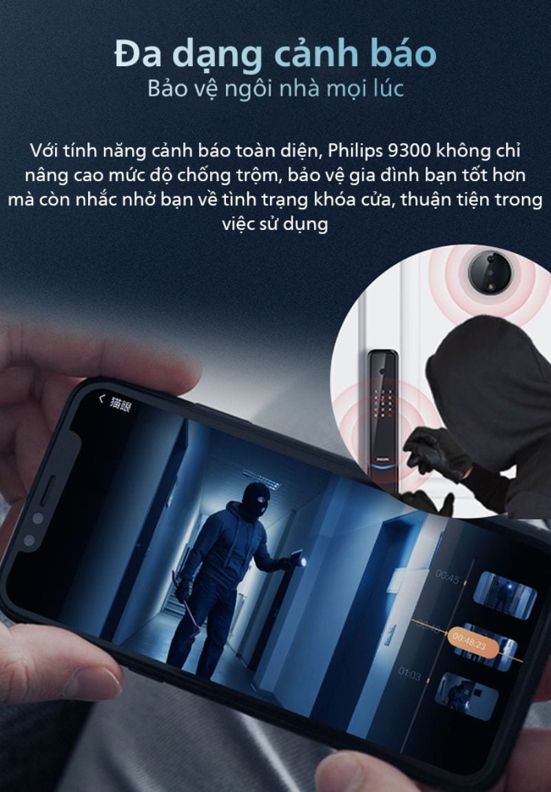 Đây là một trong số ít những mẫu khóa vân tay Push Pull của Philips được tích hợp tính năng Gateway mở khóa từ xa qua điện thoại. Philips 9300 đặc biệt phù hợp lắp đặt cho các căn hộ chung cư cao cấp tại thành phố Cao Lãnh nhờ các cảnh báo thông minh như cảnh báo cháy, cảnh báo cạy phá, cảnh báo phá khóa từ bên trong.